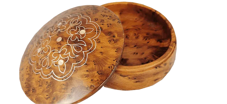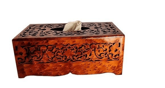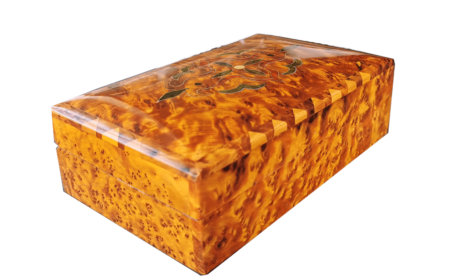 T34- Hand Carved Tissu Box. High Quality Marquetry 10.2×5.5×3.9″