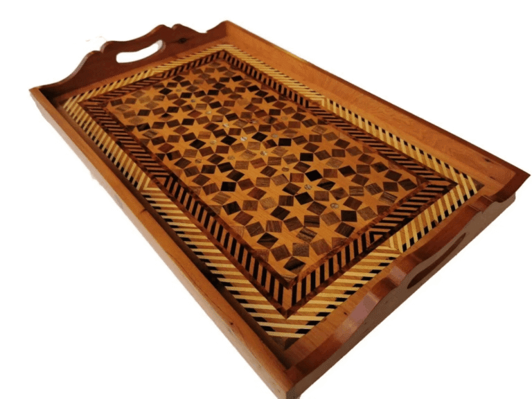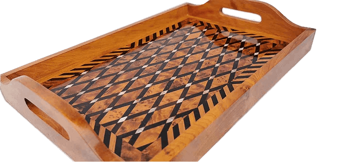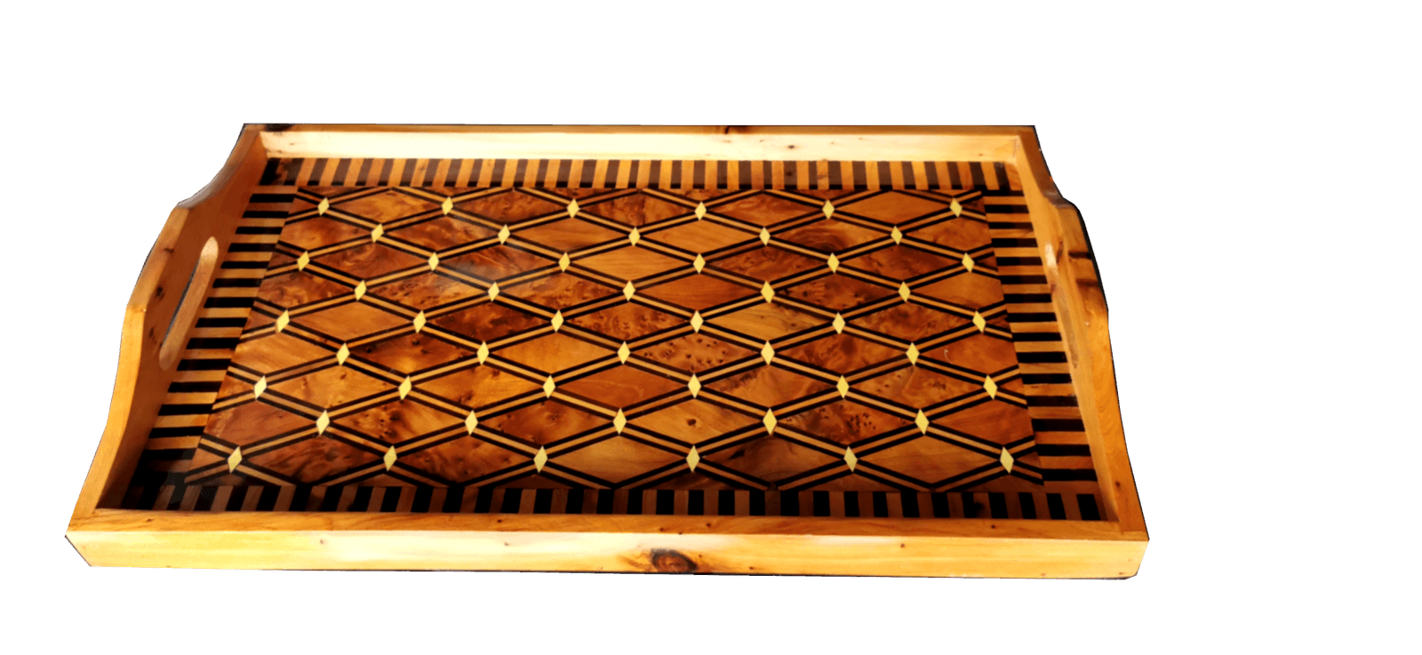 T76- Inlaid Tray of Thuya Burl. Mother Pearl and Ebony 12″x8″x1.5″/30x20x3cm