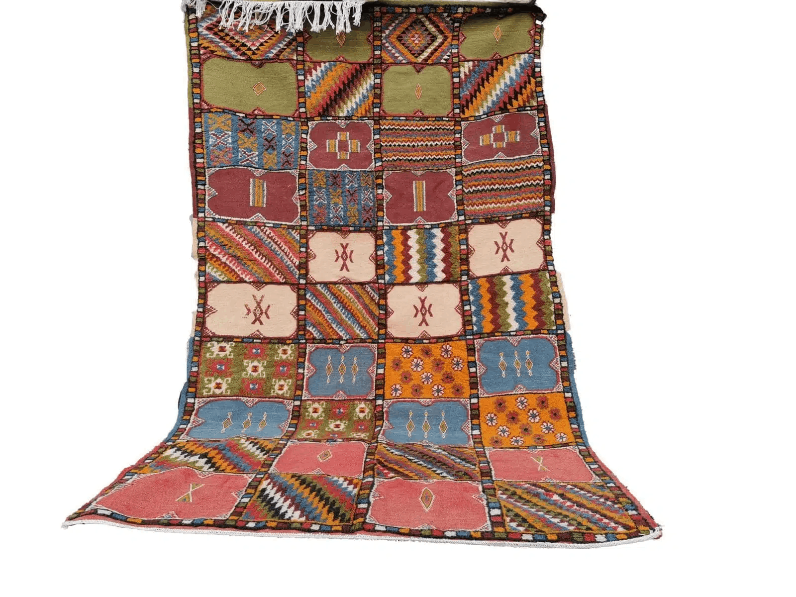 R187- Handmade Large Colourful Moroccan Berber Rug. Camel Wool Carpet-6.5×3.4 ft 200x105cm