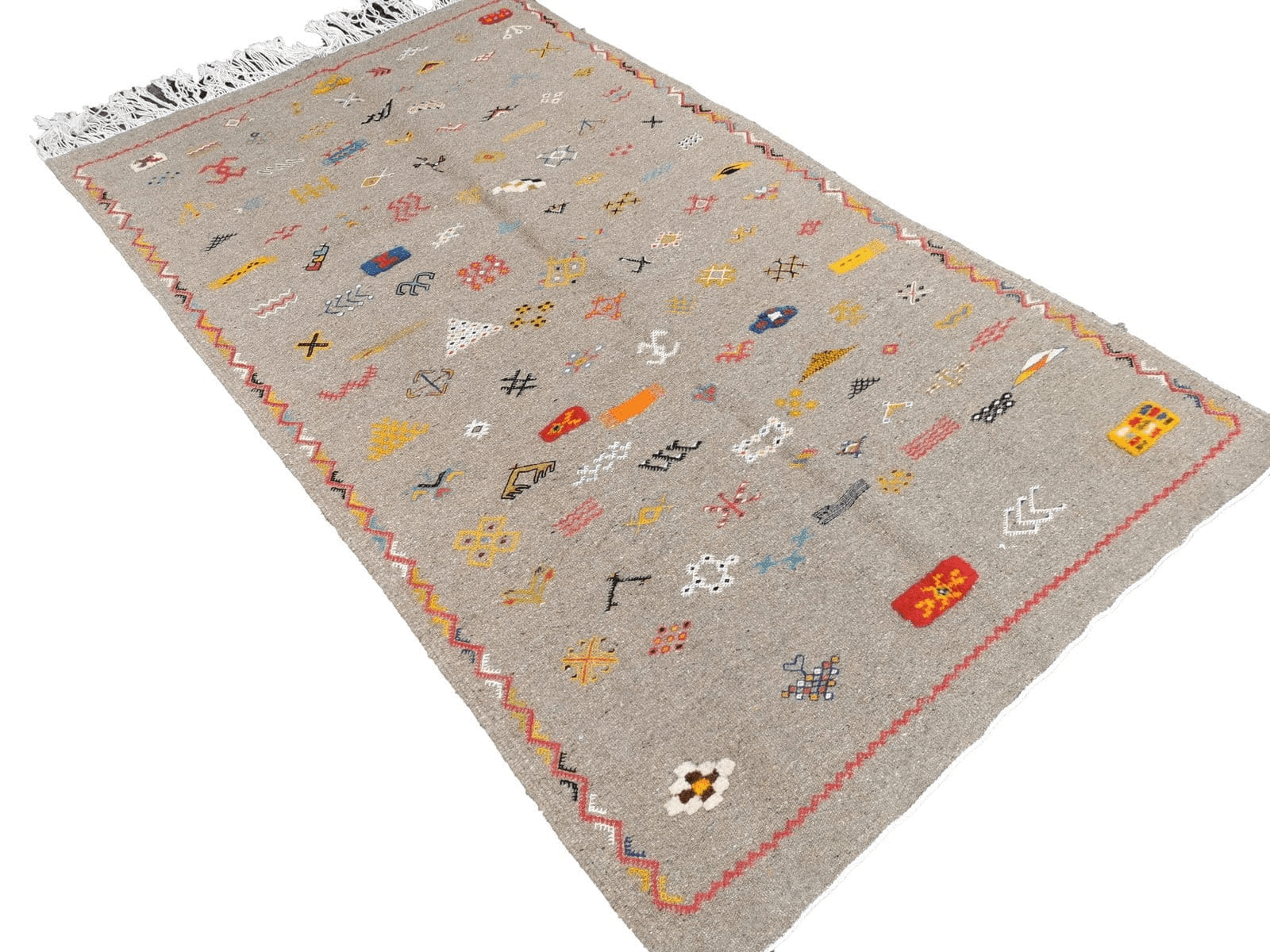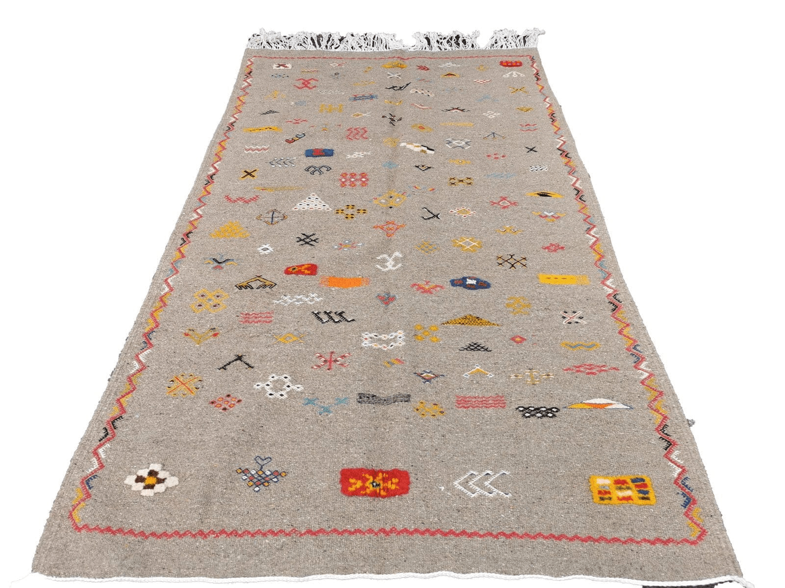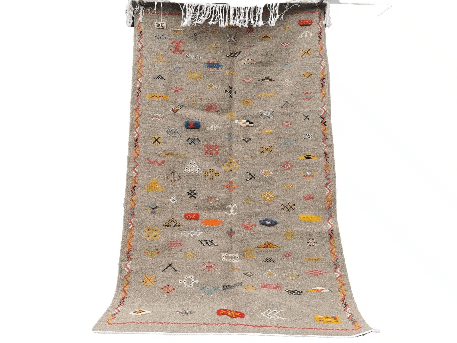Firmness, regularity and mixed and diverse finishes such as the addition of embroidery or the presence of fringes on two or four sides are the charm of Ait Ouagherda carpet. Thanks to the combination of traditional Berber craftsmanship and the oriental inspiration of motifs and relatively modern overall design, the Tuareg areas rugs adapts to both vintage and contemporary décor.