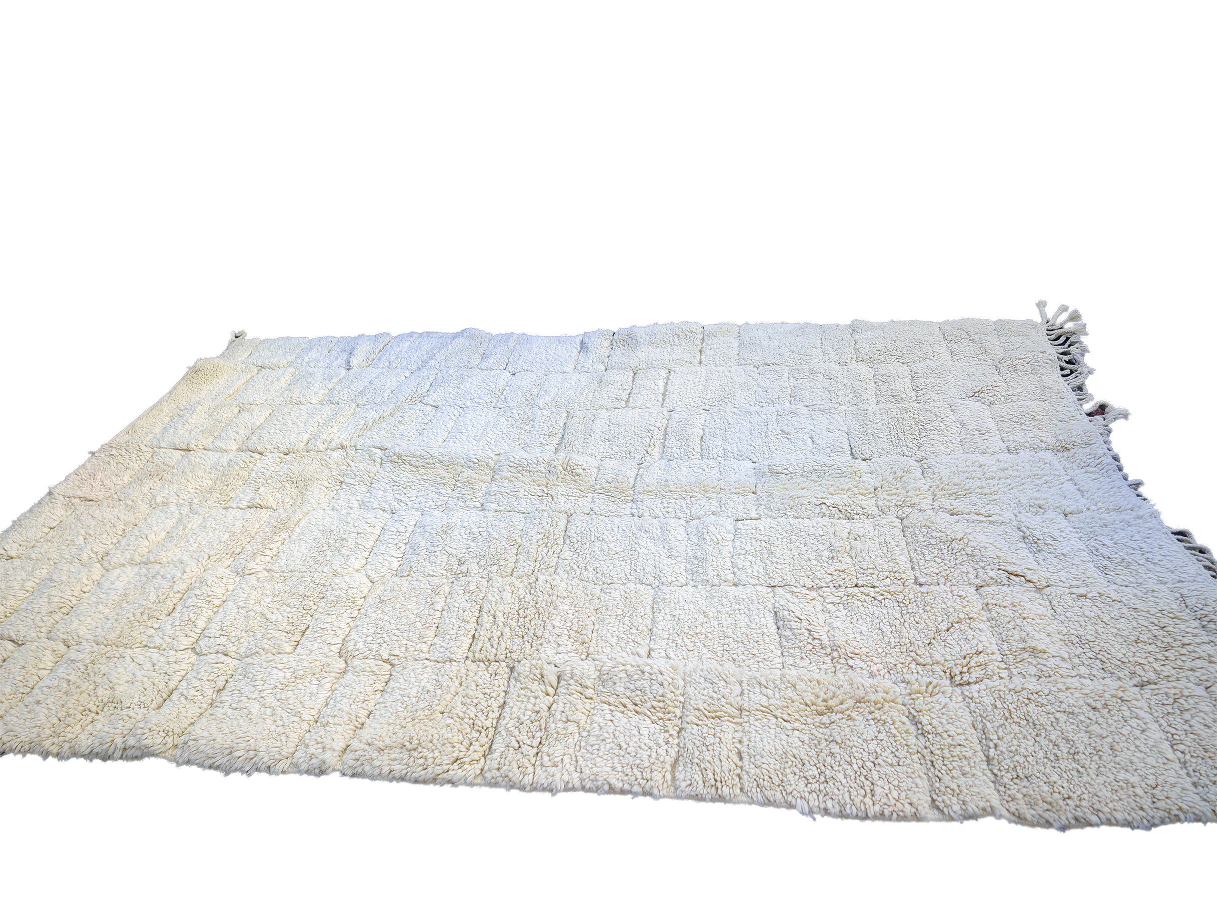 BENI OUARAIN and Azilal rugs are hand-woven by Berber artisans in the mountain side of Morocco. The techniques and intricate designs are passed on from generation to generation. The wool used to create these art pieces come from sheep that reside at high elevations, which yields an especially thick warm fiber in rich cream to beige tones. Traditionally used as bedding to keep warm in the cold winter months, they are handmade, double-knott, un-dyed 100% natural wool carpets – characteristically heavy white pile with geometric diamond designs – each one unique.very authentic Beni Ourain rug is unique in its own design and color. Unlike mass produced alternatives, each rug is truly distinct and durable over time.