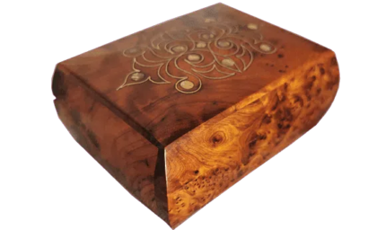 Tissu Box, Thuya Burl Inlaid.  10.2×5.5×3.9″ Hand Carved   This wood is from the Thuya tree (Tetraclinis articulate in  Latin).This