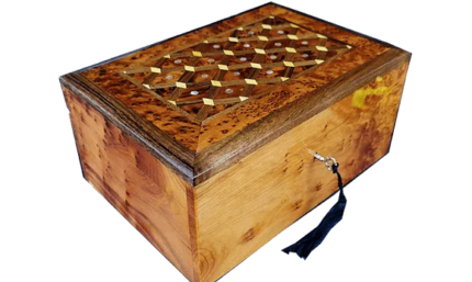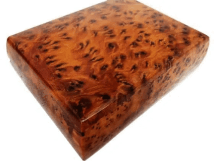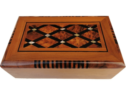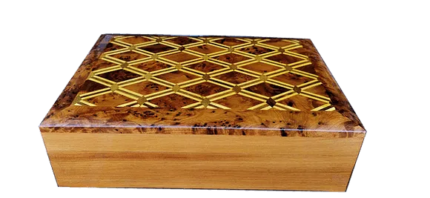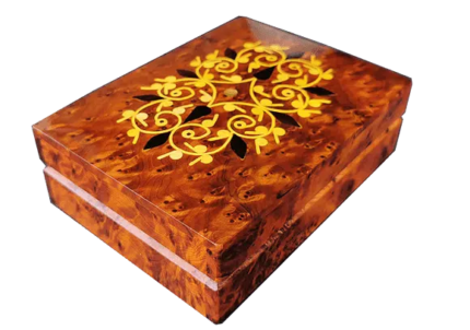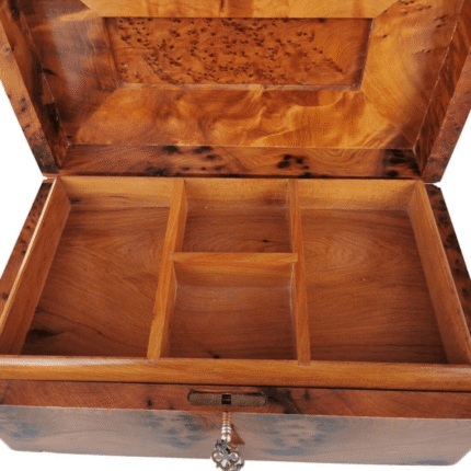 27x19x10 cm 10.6×7.4×3.9 inlaid Jewelry box made of the Thuya Burr and inlaid with Lemon wood. A perfect present for
