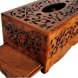 T34- Hand Carved Tissu Box. High Quality Marquetry 10.2×5.5×3.9″