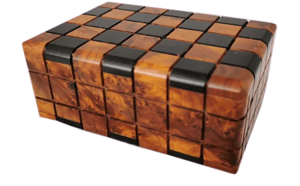 Magical Tricky Box Thuya Burl and Ebony. 13x9x5cm//5.11×3.5×1.9″   This wood is from the Thuya tree (Tetraclinis articulate in  Latin).This