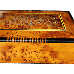 Hand inlaid Jewelry Box with 3 compartments and mirror , made from the Thuya Burl and inlaid with Lemon wood