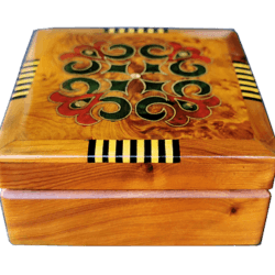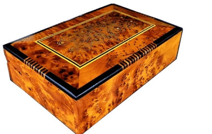 9.4×6.2×2.3 ” 24x16x6 cm Handmade Inlaid Jewelery Box made of The Thuya Burl and inlaid with Silver and Mother of