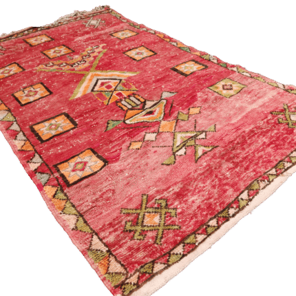 R305-Antique Handmade Moroccan Rug 100% wool 235×135 cm An antique Moroccan rug is a unique, hand-woven piece of Berber artistry,