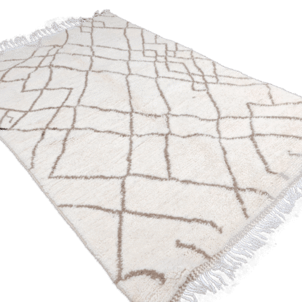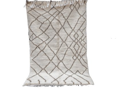 R251- Handmade Moroccan Berber Rug. 100% Wool Carpet-225×140 cm Genuine, high-quality Moroccan Beni Ourain rug, handwoven using luxuriously soft 100%