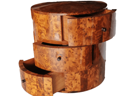 T162- Art Deco Luxurious Jewellery Box Made of Thuya Bur 30cm x20 cm diameter