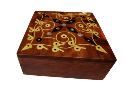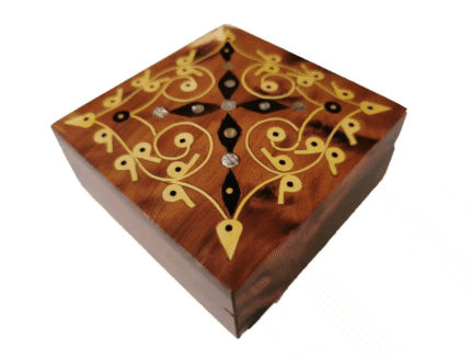 T126- Handmade Inlaid Wooden Burl Box. Inlaid Jewellery/Cufflinks Box 3.9×3.9 inch